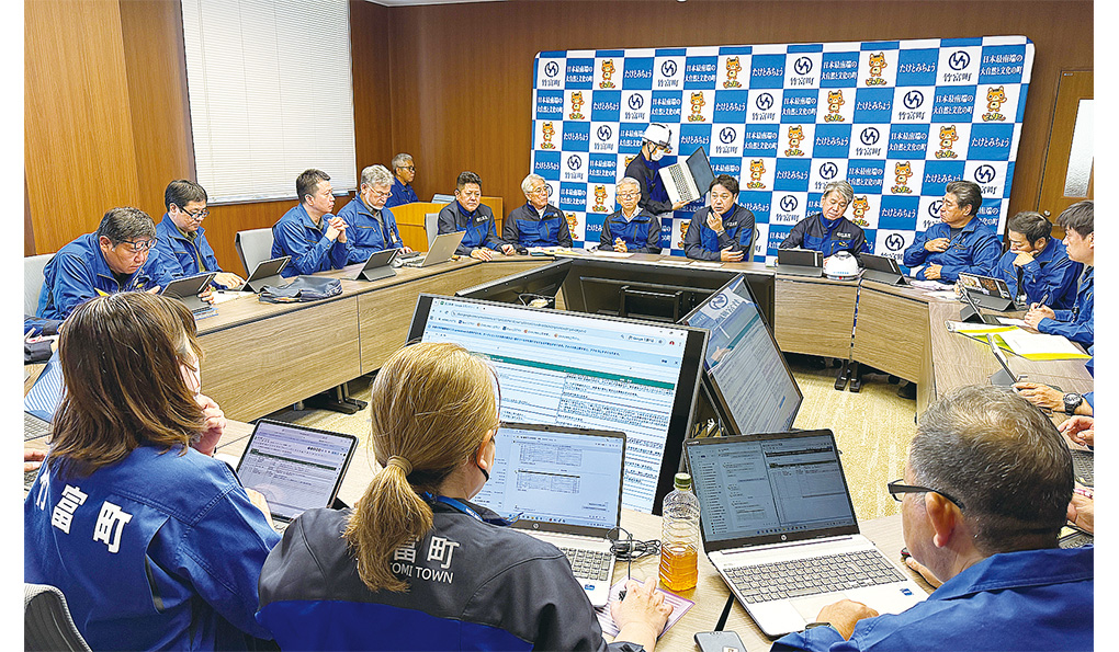 竹富町は21日、町役場で第2回職員スキルアップ研修会を開き、大規模地震と津波を想定した防災図上訓練(TTX)を実施した。全職員が参加し、発災直後の初動対応や情報共有の在り方を検証した。 想定は石垣島南東沖を震源とするマグニチュード7クラスの地震発生後、竹富町に最大5㍍の津波が到達するという厳しい内容。庁舎1階の浸水、通信途絶、海底送水管破断による断水、観光客約900人の滞留など複合的な被害を設定し…
