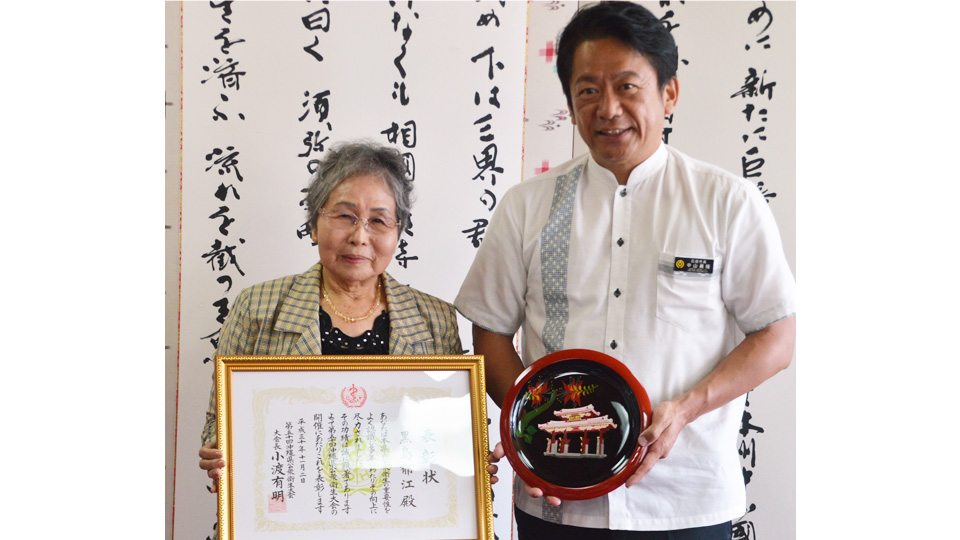 サンタクロースからのお菓子もプレゼントされ、宮良会長は「(同クリスマス会)は大きな意味での社会教育の意味がある。楽しい時間を過ごして」とあいさつした。