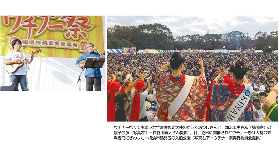 卒業式を前に八重山商工高校(波平孝夫校長)定時制の在校生は2月29日、同校で卒業生を送るために制作したステンドグラス風オブジェを披露した。同校恒例のイベントとなっている駅伝大会をモチーフに卒業生15人がゴールに向かって進む様子をイメージ。3面で構成されたオブジェには「新たな扉開き」「走りだせ」「希望への道」と記され、色フィルムを使って背面から照明で照らし、未来に向かって走り出す様子を色鮮やかに表現した。