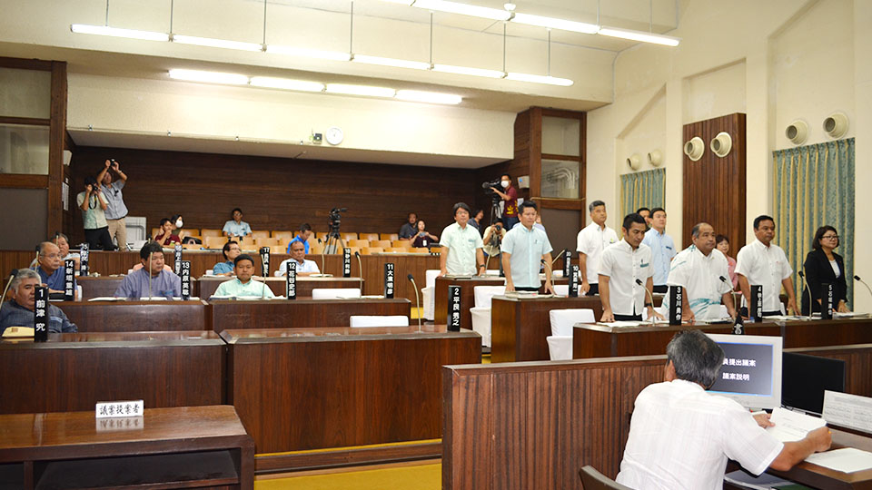 議会閉会後、外間町長は「教育長不在は3年近くになり、学校現場や地域の人に迷惑をかけた。これで通常の教育行政に戻ることになり、ホッとしている。新しい教育長には、これまでの(不在期間の)ハンディを埋めてくれることを期待したい」と話した。