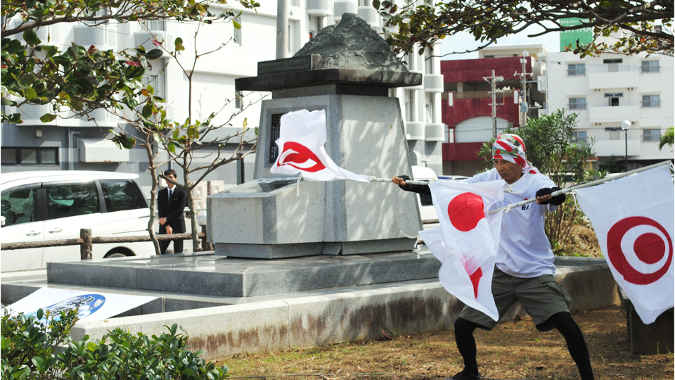 佐藤旅団長はLR-2連絡偵察機、民間団体と報道陣はCH-47にそれぞれ搭乗した。那覇基地を離陸後、一時南下し、沖縄本島南部の上空を飛行。その後、北上し中城湾上空を飛行した。