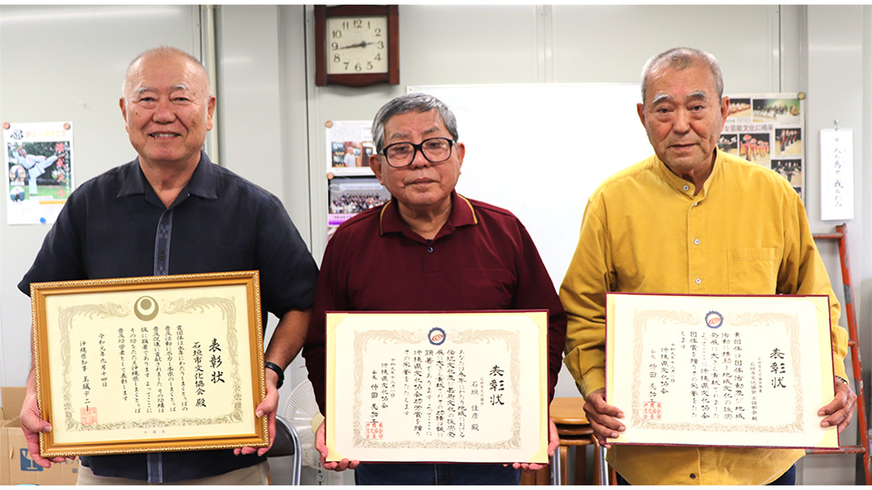 地方という大役を初めて務めた新城康隆さん(35)は三線歴32年。「先輩方の理解とサポートのお陰で弾けた。きっかけは大阿母御嶽の神司、荻堂久子さんで、『唄とその意味を伝える。そうすればあなたが次につなげられる』と声をかけてくれたこと。(演奏の)最後は感極まってしまった」と振り返った。