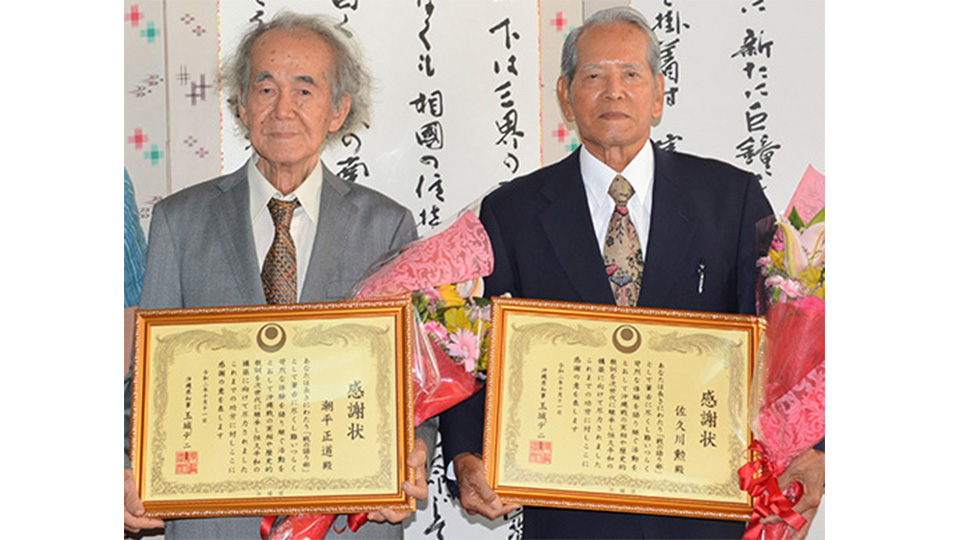 記者会見した西大舛町長と綱川代表取締役=21日午後、竹富町役場仮庁舎