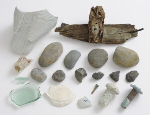 沖縄県立埋蔵文化財センターの調査から、中国産白磁や青花、欧州産陶器、産地不明の磁器、金属製品、木製品、石製品、ガラス製品、動物の骨などが回収されている(写真2)。