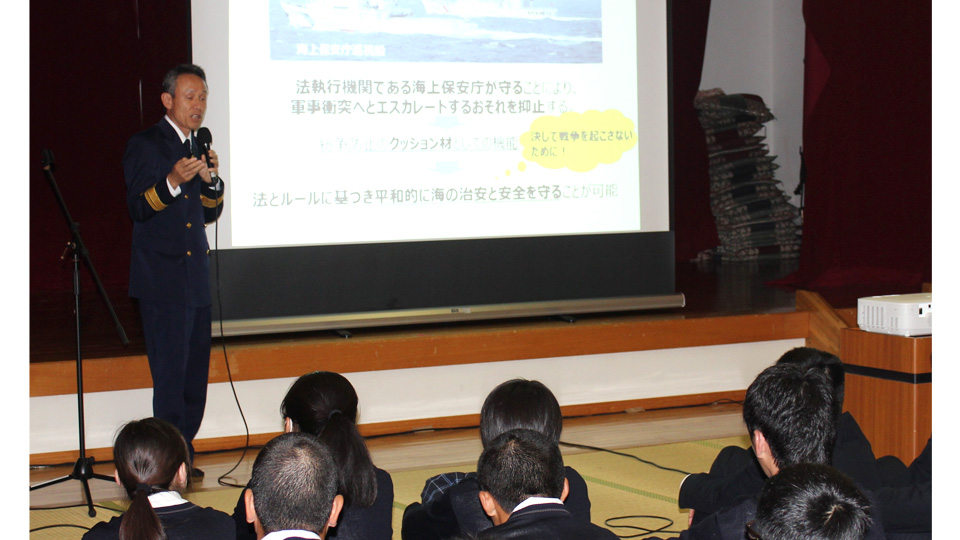 訓練開始前の午前9時には、公民館内で事前勉強会を国が開催。弾道ミサイルの概要やJアラート・Mネットなどの情報伝達手段、住民が取るべき行動などを解説した。
