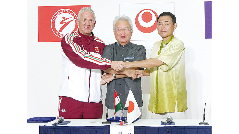 包括連携協定を締結した中山市長と比嘉代表=20日午前、市役所
