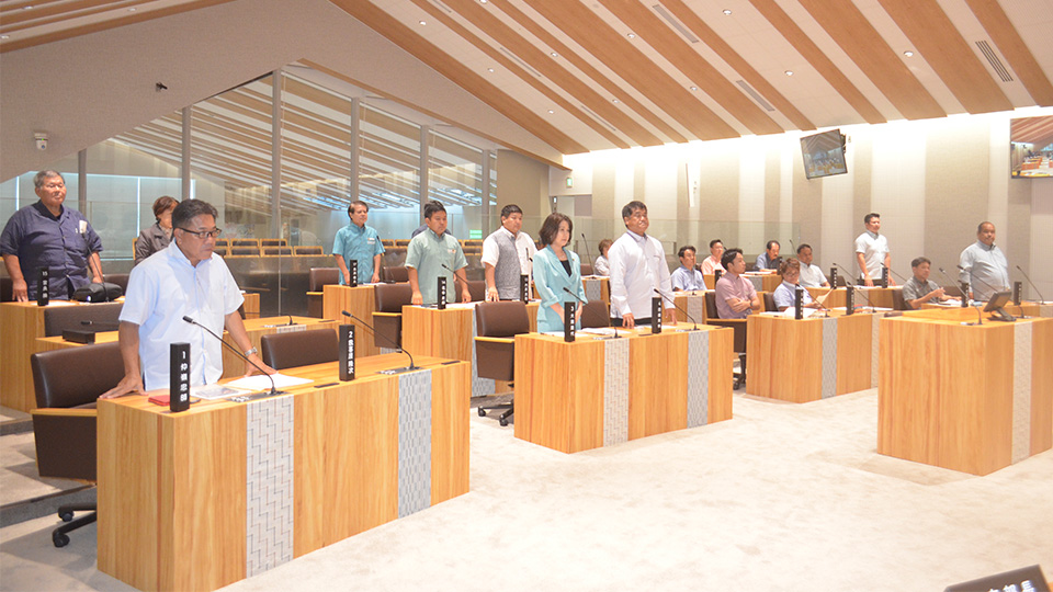 竹富町立竹富小中学校(岡崎心一校長)は16日、竹富島に来島した玉城デニー知事の歓迎会を同校体育館で開催した。約20人の児童生徒や学校関係者が参加。子どもたちは竹富島の紹介や方言、学校で行うエシカル教育について、プロジェクターを使って説明した。