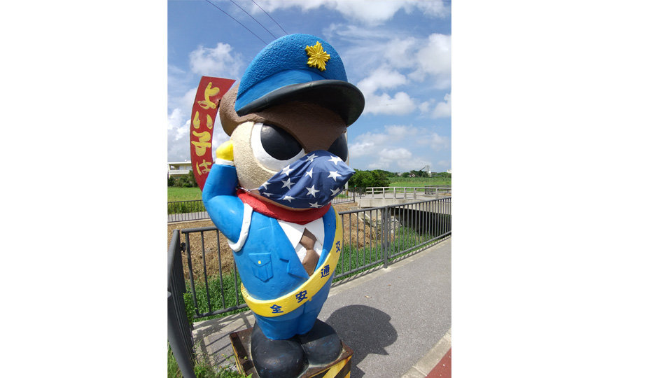 西表島干立地区代表の齊藤幸平さん(45)は移住者。島内では猪狩りの時期だと説明し、獲物を捕獲した人の動きをユーモラスに表現した。
