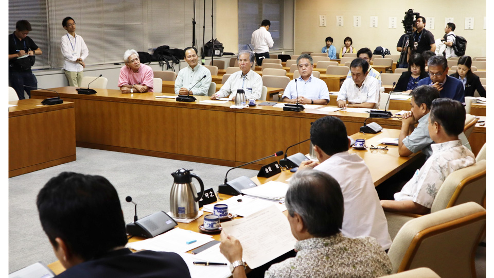 違反行為には過料を科すと明記した立ち入り禁止看板の設置を要求する島袋氏に対し、前川部長は「反対活動の代表者と面談して、安全を確保することを確認した。県の判断で立ち入り禁止にしていない」と応じなかった。
