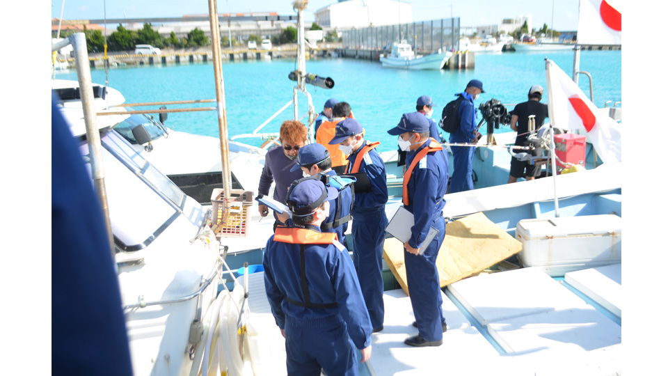 サンディエゴの後部甲板上には立食用のテーブルや料理が並べられ、防衛協会や自衛隊・海保の幹部、在沖米国総領事が参加したレセプションが行われた。米盛博明会長は「日米同盟は強固だ。乗員が市民と交流し相互理解を深めることを期待する」と歓迎。