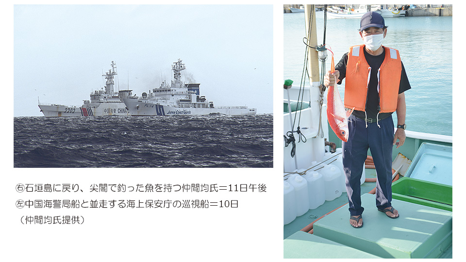 「獅」は正午ごろ魚釣島周辺に到着し、漁を始めた。海保によると、機関砲を搭載した中国艦船「海警2303」「海警2301」が0時半ごろ領海侵入した。