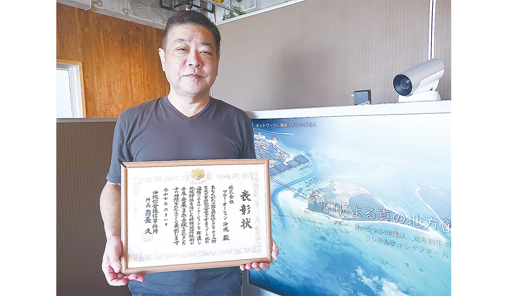 これまでに3社の社員らを宮古島に案内し、現地での観光もサポートした。ワーケーションの実践を推進したと評価され、今年6月には沖縄総合通信事務所から表彰を受けた。