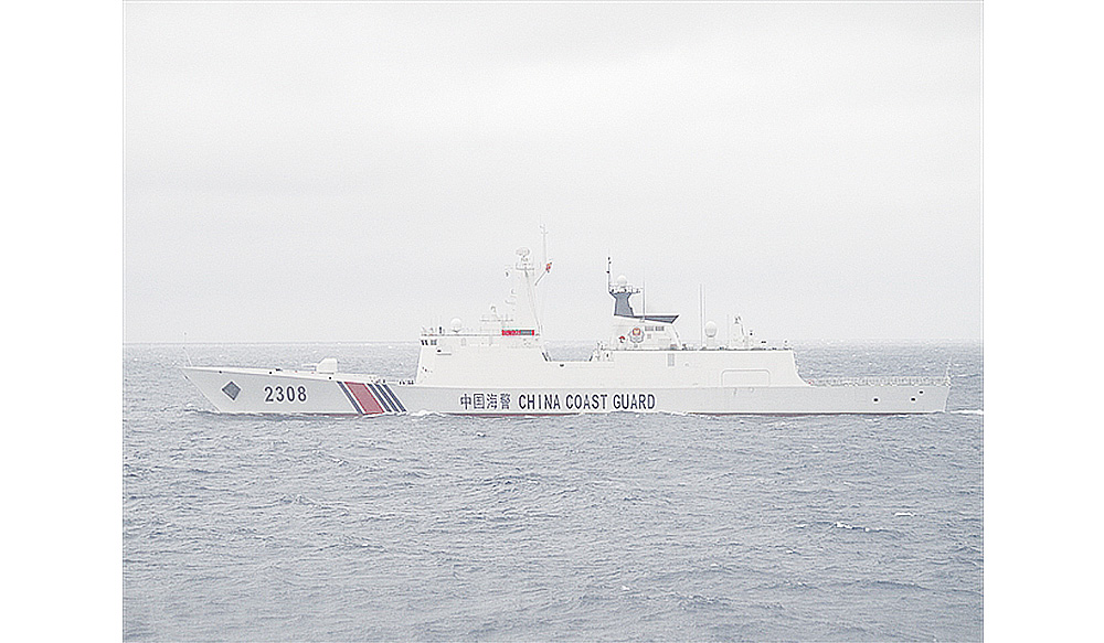 尖閣周辺に初めて現れた「海警2308」(第十一管区海上保安本部提供)