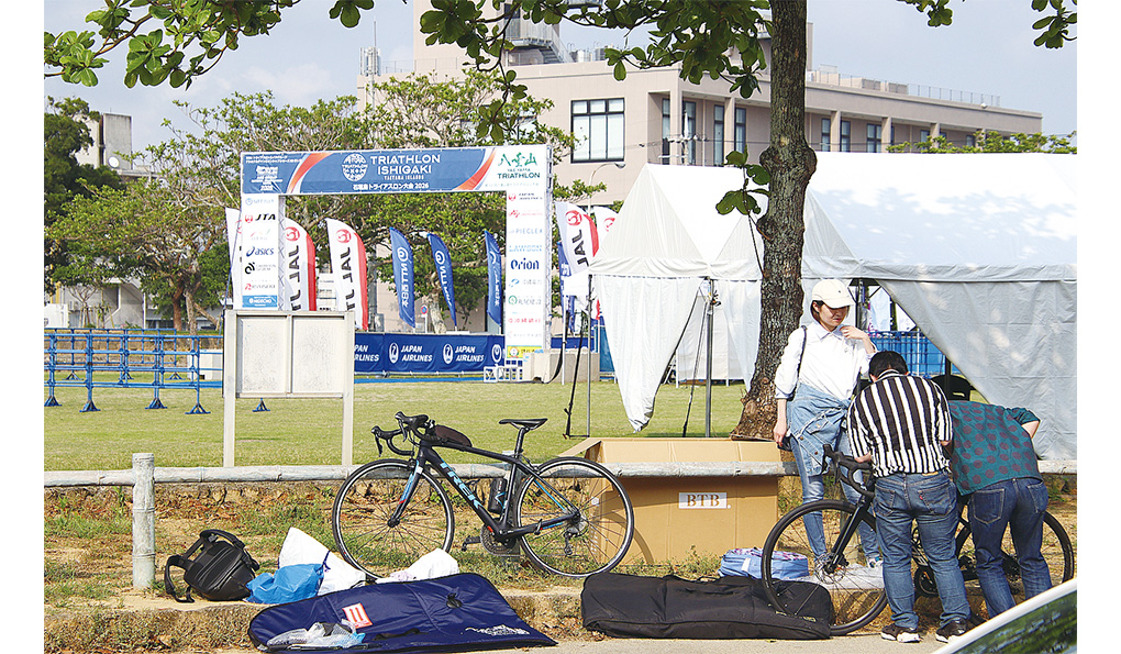 スイムでは人工ビーチ沖のコース(750㍍)を2周。次のバイクでは、南ぬ浜町を出てサザンゲートを渡り、例年どおり島内を反時計回りで1周し40キロを駆け抜け、新栄公園を目指す。バイクの規制時間は正午ごろまで。最後のランは同公園から出て万世館通りを北上し中央運動公園やシード―線を走り、再び公園に戻りゴールする。