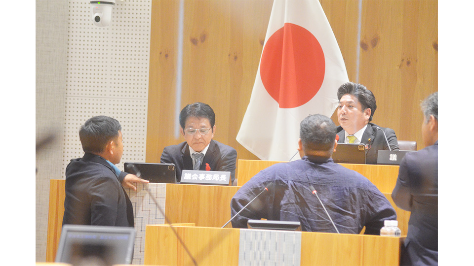 防衛省は島中央部の平得大俣地区で駐屯地建設を計画しており、予定地の約半分に相当する約23㌶を市有地が占める。中山市長は防衛省から売却の要請があれば前向きに検討する考えを示しているが、議会の同意を得る手続きが必要になる。