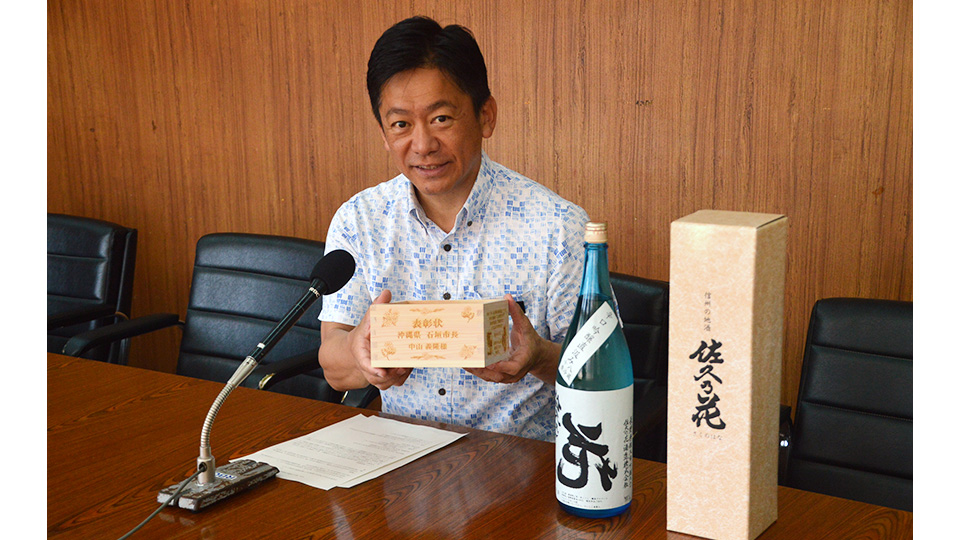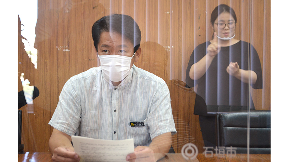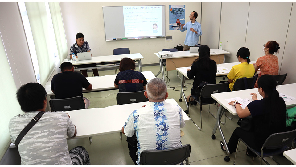 ISCOの永井義人専務理事(右)と瑞慶覧桂太総務セクション課長=15日午後、那覇市IT創造館