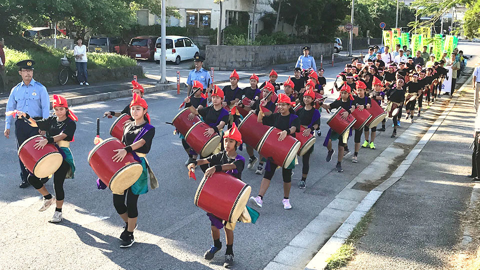 竹富島の子どもたちの多くは餅つきは初めての体験だが、次第に慣れてくると、かけ声を出しながら力強く餅をつくことができた。完成した餅はきな粉や小豆をトッピング。この日はPTA主催のミニ駅伝大会も開かれていたため「駅伝より疲れた」などと笑いながら、熱々の出来立て餅を堪能した。(隅田賢通信員)