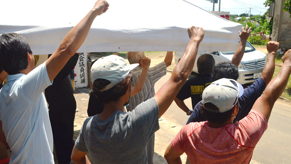 県民投票を巡っては宜野湾、宮古島、沖縄、うるま、石垣の5市長が不参加を決めた。昨年10月の県議会では自民党などが「やむを得ない」「どちらとも言えない」を加えた4択とする条例案を提出したが、否決された。うるま市は、県民の意思を的確に反映するために4択にすべきだと主張し、選択肢を増やすなどすれば再考する余地があるとする自治体もある。