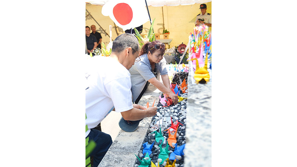 夫が派遣隊員の中島千尋さん(32)は幼い子供を連れ、帰国行事に参加。「無事に帰ってきてくれたのがうれしい。お疲れ様でしたと言いたい」と笑顔を見せた。