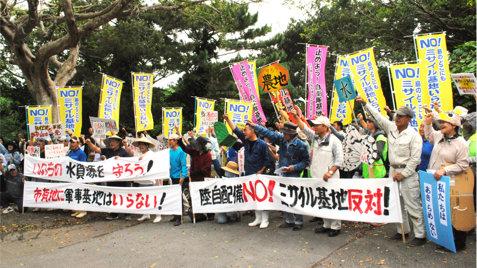 石垣市議会(平良秀之議長)は28日の本会議で、石垣島への陸上自衛隊配備に対する賛否を市民に問うため、仲間均氏が動議で提案した議会の解散決議を採決した。賛成12、反対9で賛成多数になったものの「地方公共団体の議会の解散に関する特例法」が規定する特別多数には達せず、否決した。仲間氏は取材に対し「尖閣諸島の現状を考えた時、自衛隊は必要だ」と述べ、議会を解散し、出直し市議選で市民に配備の是非を問う必要性を強調した。陸自配備に反対する野党を牽制する狙いがあったものと見られる。