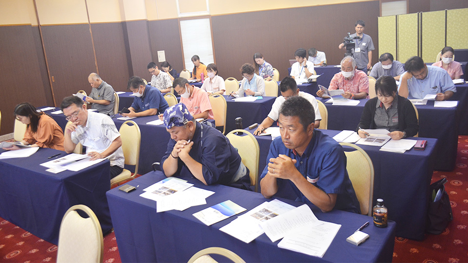 恒例の「獅子皮作り」 豊年祭に向け準備 登野城獅子保存会