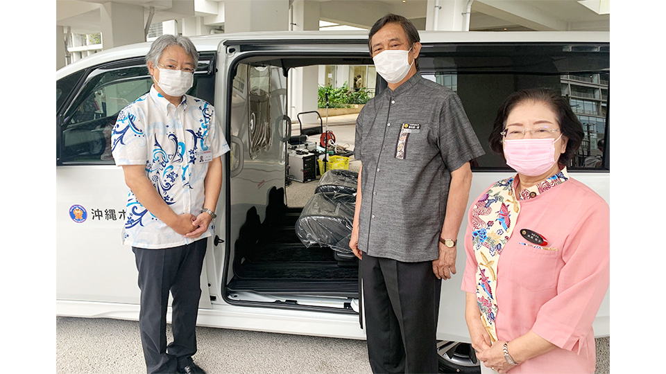 離島向けの「尚」をPRする関係者(右から座喜味氏、座安氏)=16日午前、県庁