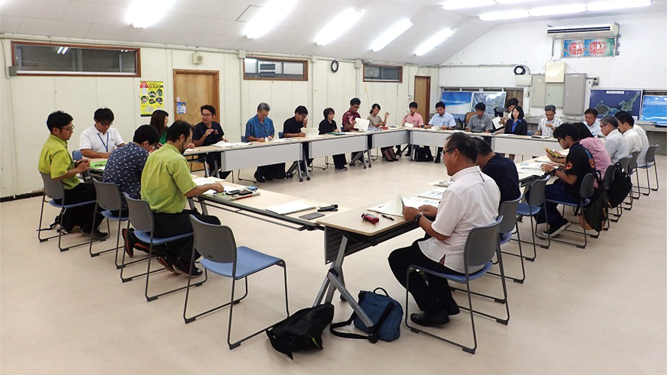続いての「舞台芸能」では玻座間長者(ホンジャー)の登場で始まり、五穀豊穣を神である弥勒(ミロク)や竹富島に農具の伝来を示し、鍬を打つ「鍛冶工(カザグ)」、畑を耕す「組頭(フンガシャ)」、種をまく「世持(ユームチ)」、収獲を祝う「世曳(ユーヒキ)」などで島の歴史を再現した。