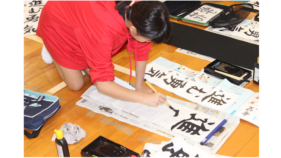 教育 「今年の思い」筆に込める 新春書き初め大会 宮良小 石垣市立宮良小学校(仲間一史校長。全校生徒136人)は8日午前、新春書き初め大会を開き、全校生徒が今年一年に対する思いに、筆で挑んだ。1、2年生は各教室で硬筆に、3~6年生は体育館で毛筆に取り組み、目標を自分で意識し、練習を積むことの大切さを学び、教わった人への礼儀作法を実践した。 2019/01/09