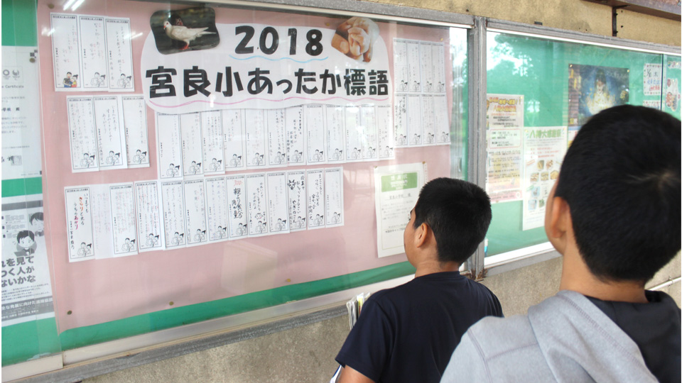 教育 児童への愛を五・七・五で 宮良小あったか標語掲示 宮良小学校(仲間一史校長、児童136人)では、「性・エイズ教育」の一環として児童の自己肯定感を高めようと、同校の保護者と職員を対象に、児童への愛情を題材とした「五・七・五」でつくる「宮良小あったか標語」を募集し、校内で掲示している。 標語には▽「ただいま」と元気な声が待ちどおしい▽両親の笑顔の秘訣は子の努力▽300㌘親より食べる肉の量▽ありがとう親にしてくれてありがとう▽その笑顔どんなものよ… 2019/01/10