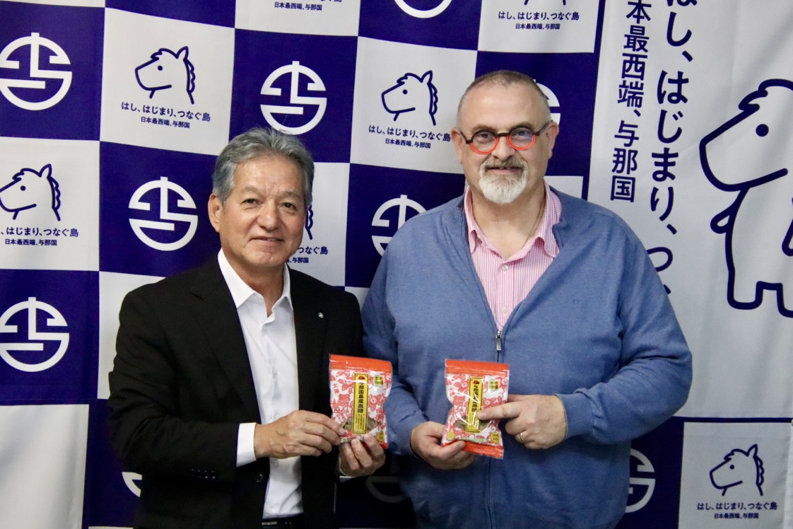 社会 与那国の黒糖絶賛 「世界に広めたい」 著名仏人バイヤー 著名フランス人バイヤーのオリヴィエ・ドゥレンヌ氏が2日、与那国町を訪問した。島内を回り黒糖の生産現場などを視察。同日午後に上地常夫町長とも面談した。オリヴィエ氏は与那国島の黒糖を絶賛。「砂糖と黒糖は全く味が違う。価値を認めてもらえるような売り方をしたい」と提案。海外への販路拡大を目指したいと意気込んだ。 オリヴィエ氏は、日本のさまざまな食材を取り扱う輸入商で、全国各地を訪問し魅力的な食材を買い付け… 2026/03/06