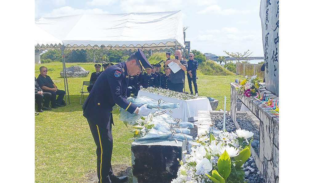 1945年3月26日、故郷の石垣島から沖縄戦の陸軍特攻第1号として出撃した伊舍堂用久中佐(戦死時大尉)と特攻隊員らの慰霊祭が26日、南ぬ浜町の顕彰碑前で開かれた。慰霊祭は戦後80年の節目となる昨年まで実行委員会が主催していたが、今年から八重山防衛協会の主催に移行した。 同協会の米盛博明会長は「祖国を守るという強い使命感を胸に、若くして出撃された。強い感慨と敬意を抱かずにはいられない。英霊の志を決し…