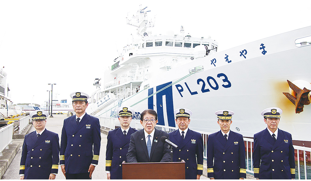 就任以来、初めて沖縄を訪問した金子恭之国土交通大臣は15日、石垣市を訪れ、市内にある海上保安庁の航空基地と石垣海保を視察した。職員への訓示では、「尖閣諸島周辺海域で、中国海警による領海侵犯や日本漁船に近づく事案が発生している」、「海上の法執行機関として冷静かつ毅然と対峙する職員は、我が国に必要不可欠」と激励した。 金子氏は、尖閣専従部隊の巡視船が停泊する浜崎船艇基地で巡視船「やえやま」に乗船し、装…