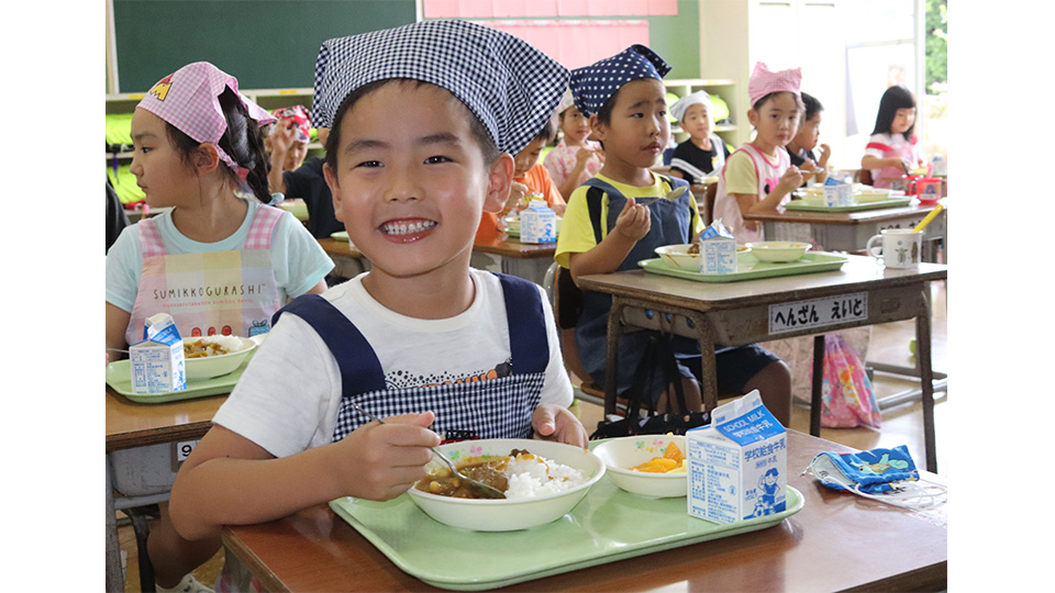 市原校長は「入学式の花卉(かき)の提供はじめ、地域の助け合いの姿勢に感動している。(美崎牛を)味わい、おいしい給食が食べれたと思う」と感謝した。
