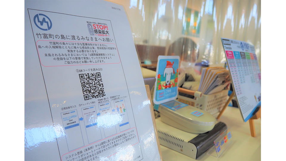 登録は、乗船チケットを購入する船会社窓口に設置された案内文や町ホームページからも可能。