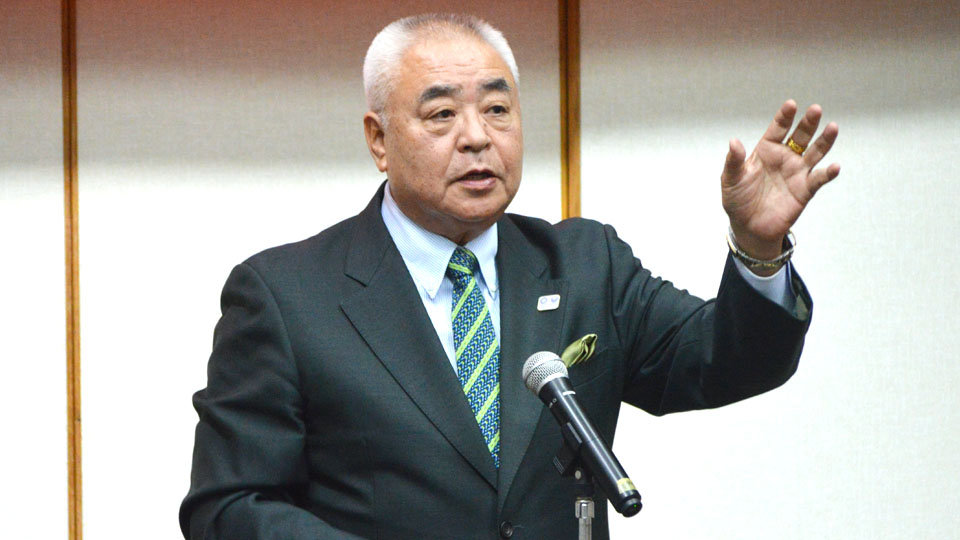 元全日本女子バレーボール監督の柳本晶一氏を招いた講演会「バレーボールスクール イン石垣島」(主催・沖縄菅公学生服㈱)が20日、大濱信泉記念館で開かれた。石垣市のバレー指導者ら関係者約21人が参加し、柳本氏の監督時代の経験談に耳を傾けた。